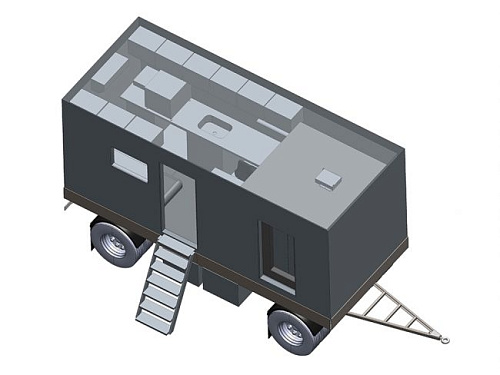 Камера радиационной защиты представляет собой каркасную конструкцию из свинца и стали, размещенную в фургоне (КУНГе) на колесной платформе. Платформа имеет сцепное устройство и может быть отбуксирована непосредственно на участок контроля. Помимо камеры радиационной защиты в модуле фургона имеется помещение, предназначенное для работы дефектоскописта.